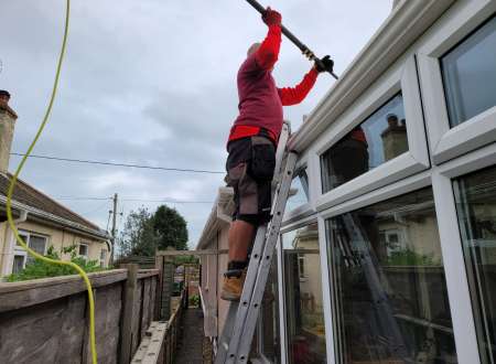 Conservatories collect dirt more quickly than standard windows. Rainwater runs across the roof panels and down onto the side windows, carrying dirt with it.