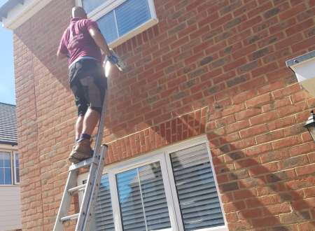 Professional cleaners use long reach poles and follow guidance from the Health and Safety Executive when working at height. This ensures windows are cleaned properly without risk to the homeowner.
